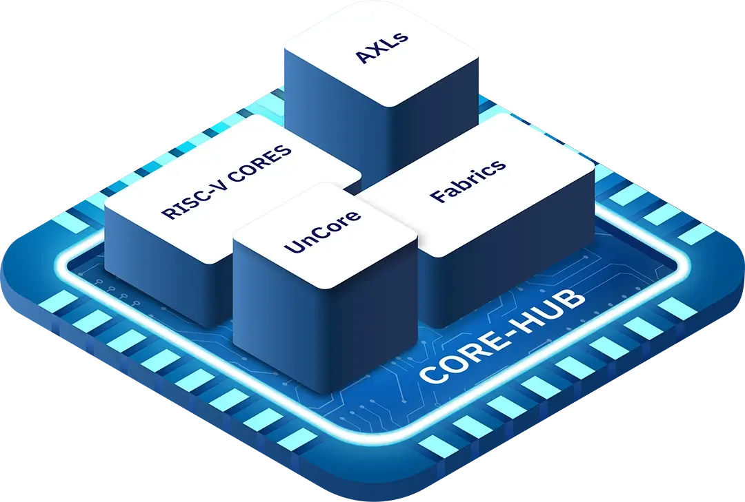 Core-hubs feature a highly configurable verification environment utilizing novel tech such as eUVM and ASM generators to create comprehensive test cases for maximum IP coverage.